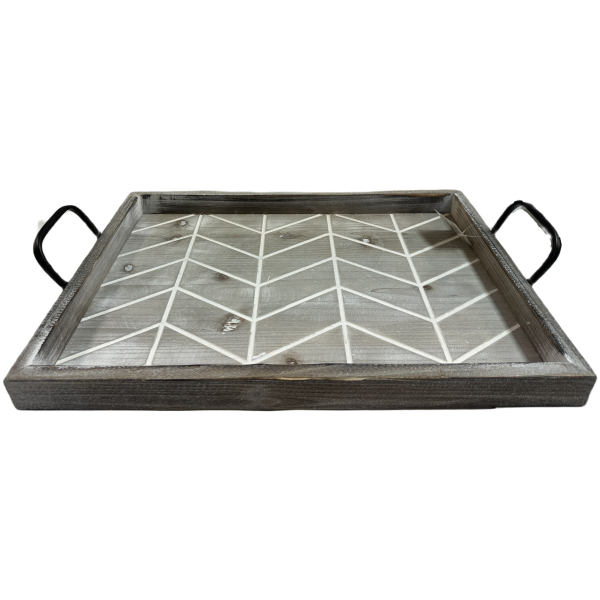 Wood trays with iron handles Large Tray: 22"x14"x1.75"Hx3.75"OH